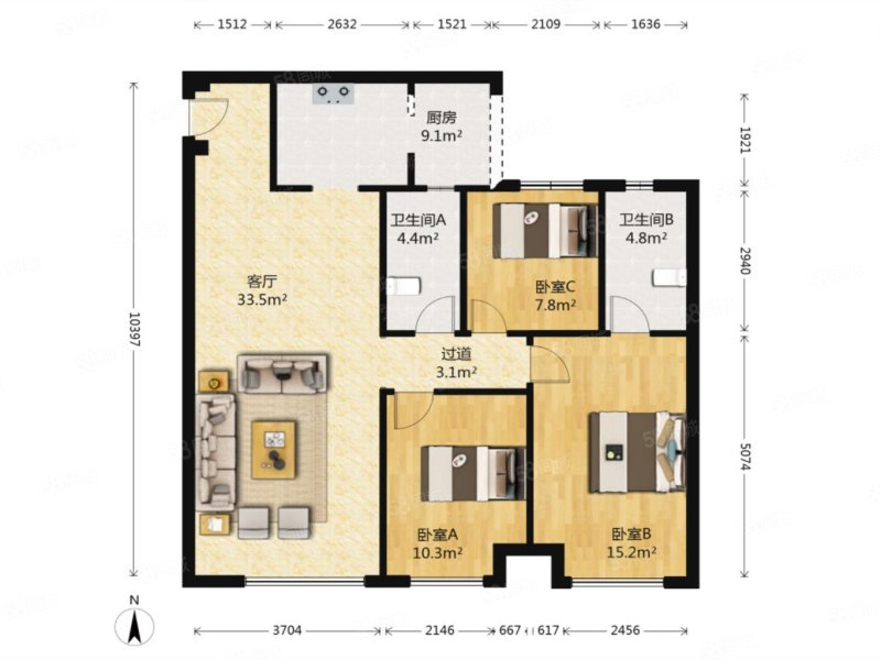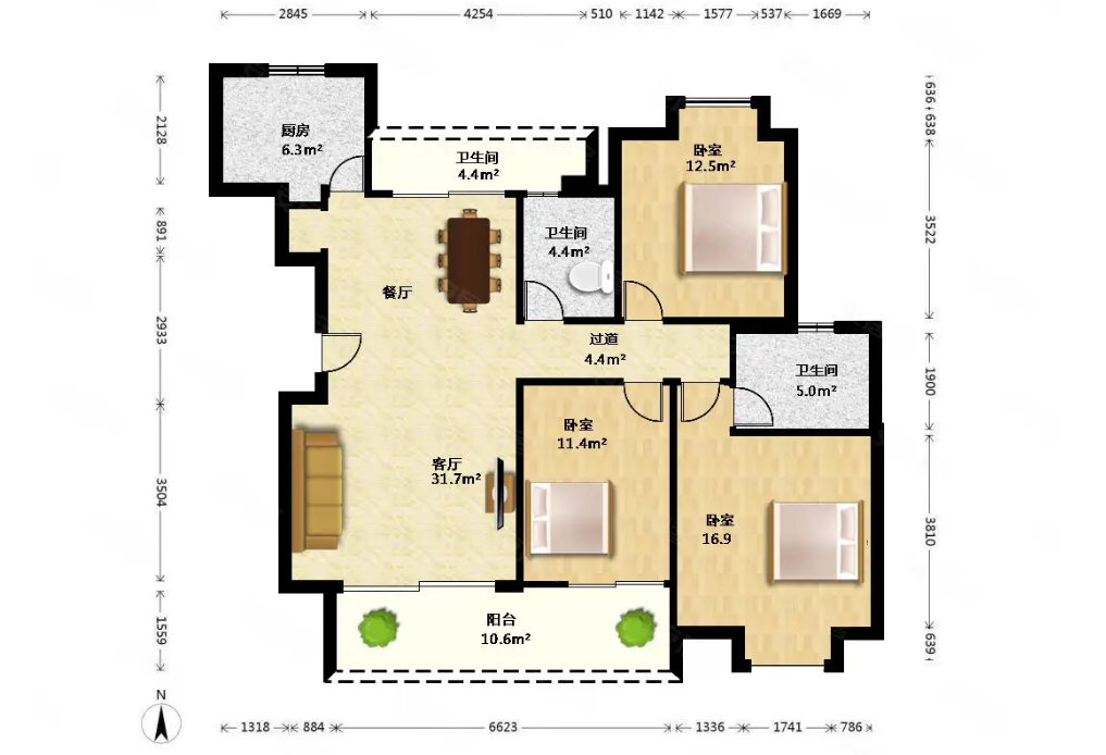 3室2厅2卫 | 63㎡ | 南北/中层(共30层)
