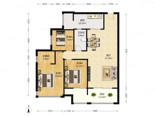 3室2厅2卫 | 115.09㎡