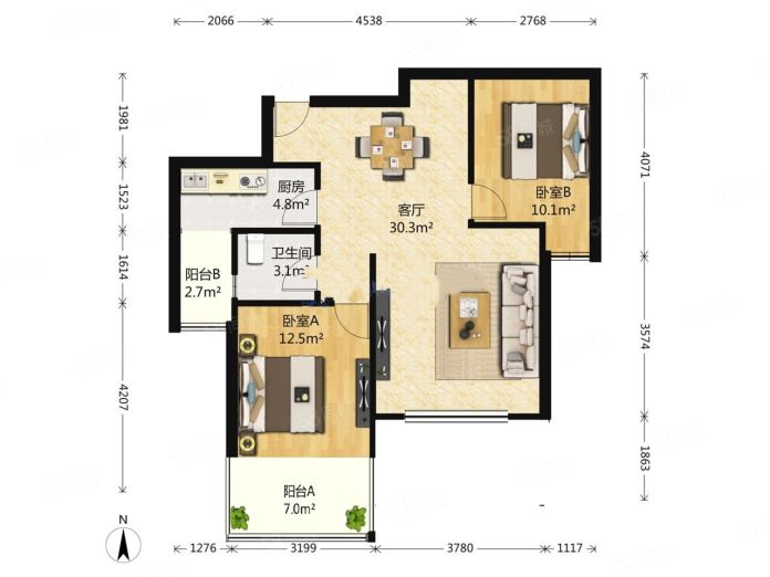 2.此房格局方正,楼层适中,采光很好,阳台外风景很棒,卧室超大,性价比超高。